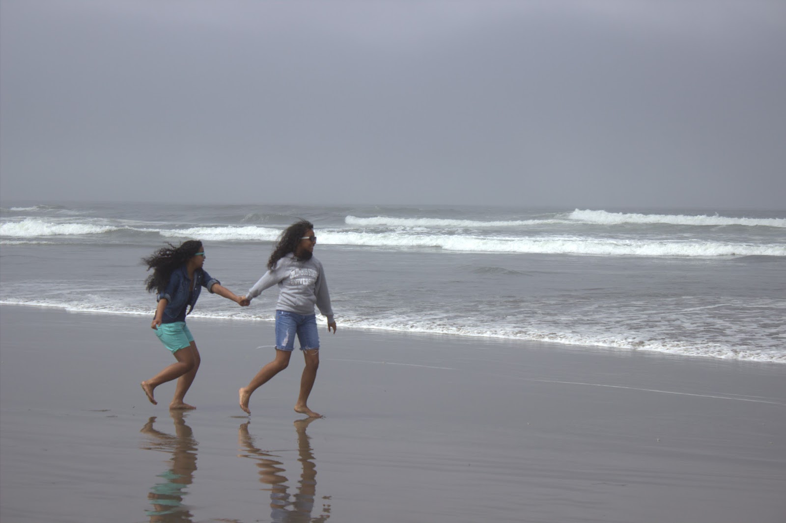 | Kae pulling me toward the freezing cold water. Brrr! |