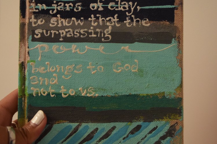 As you can see in the picture, Taylor painted 2 Corinthians 4:7 on it, a verse that meant a lot to me during my junior year of college, and now, as I am seeking the Lord, and trying to understand more of Who He is, I’m seeing now just how much that verse still means to me.